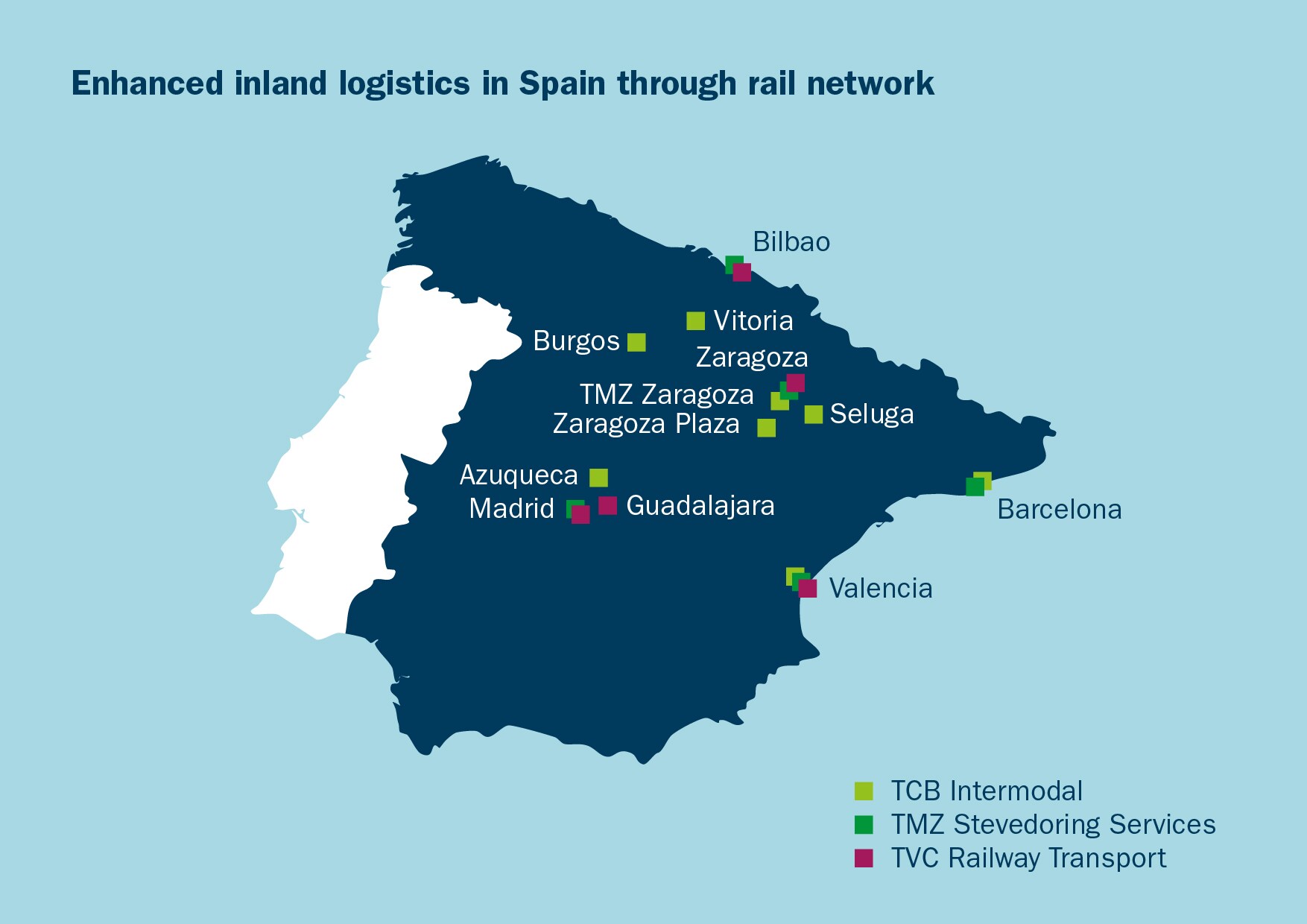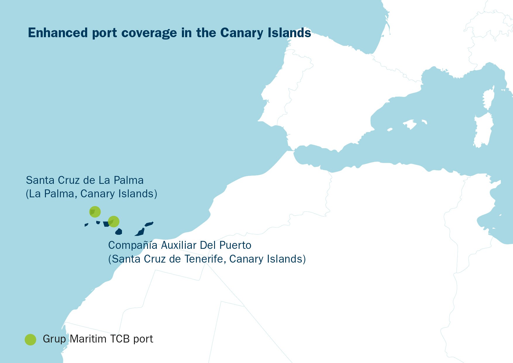 Grup Maritim TCB consists of Spanish container terminal concessions in Barcelona, Valencia and Castellon, on the Mediterranean coast, along with the concessions in Gijon, on the Bay of Biscay, and in the Canary Islands: Santa Cruz on Tenerife and La Palma on Gran Canaria. Outside of Spain, Grup Maritim TCB’s terminal operations include Izmir, Turkey; Yucatan, Mexico; Quetzal, Guatemala (under construction, opening 2016); Buenaventura, Colombia, on the Pacific Coast; and Paranagua, Brazil.