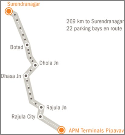 - APM Terminals holds a 38.8% share in a 269km broad gauge railway line built by PRCL, which connects the port to Surendranagar, the national rail network and a Dedicated Freight Corridor